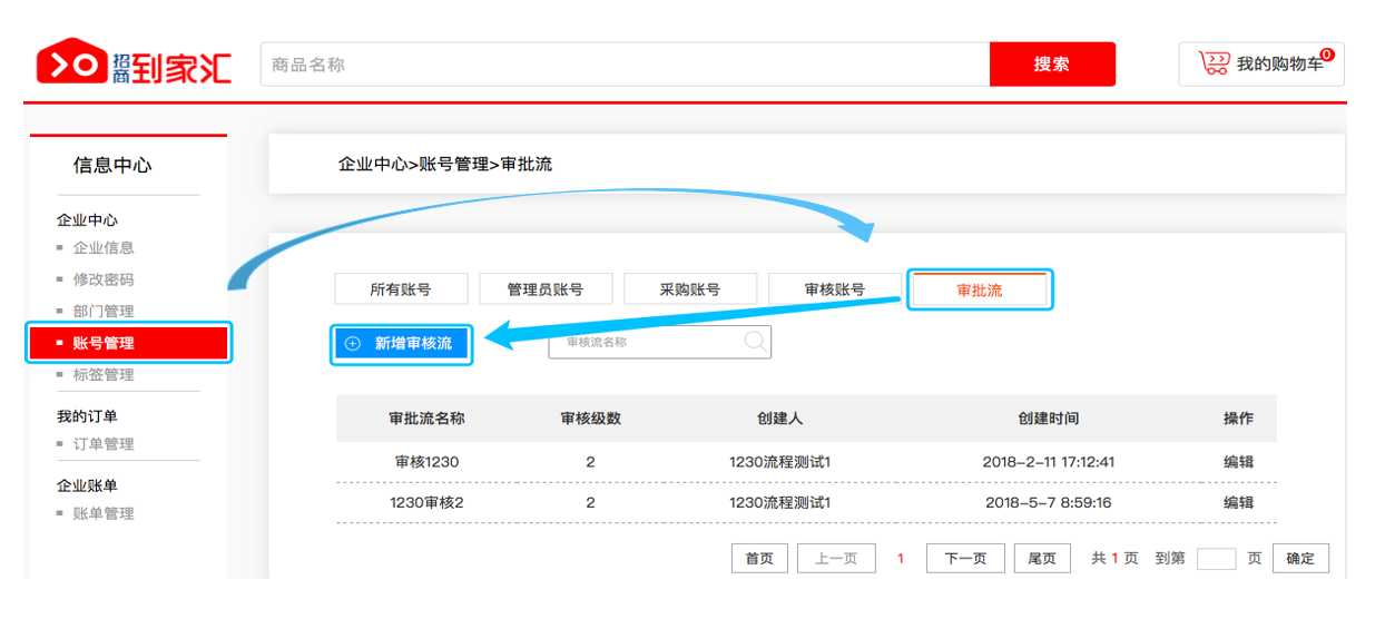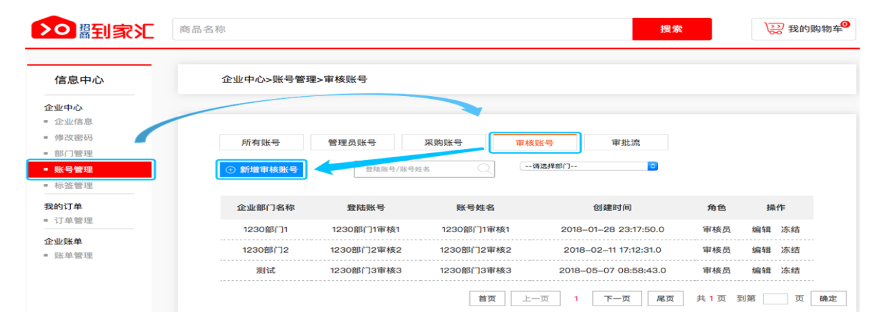 如何新建采购账号、审核账号、审核流及成本标签