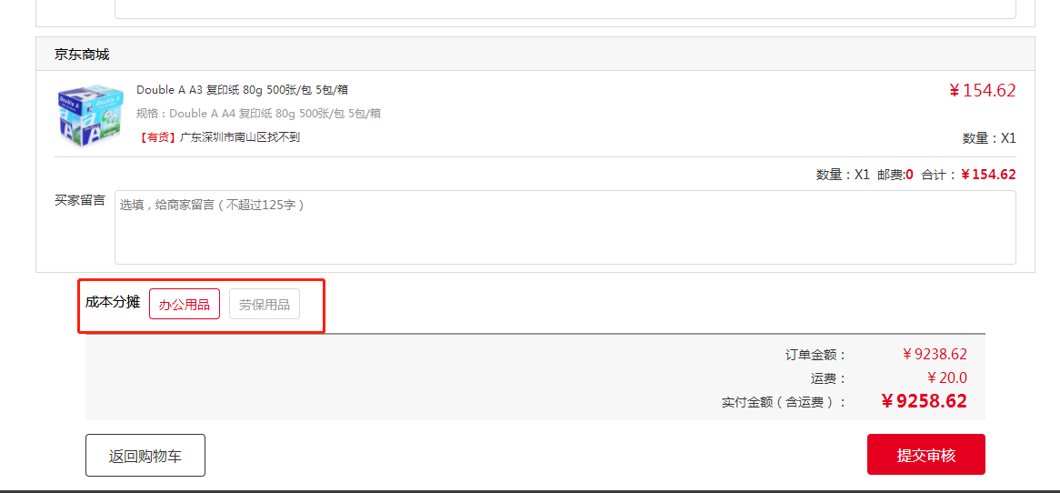 注:部门地址不唯一,可添加多个收货地址